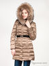 Замечательный пуховик из практичного материала красивой расцветки. Удлиненная модель приталенного силуэта, с капюшоном, украшенным мехом. Изделие имеет застежку на молнию и дополнено ремнем.