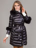 Женственное стеганное длинное пальто-пуховик приталенного силуэта декорировано съемной опушкой из натурального меха песца по краю капюшона и съемными меховыми манжетами. Декоративный завязывающийся пояс, вышитый вручную стразами, подчеркивает линию талии и делает модель более женственной.