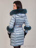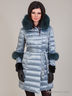 Женственное стеганное длинное пальто-пуховик приталенного силуэта декорировано съемной опушкой из натурального меха песца по краю капюшона и съемными меховыми манжетами. Декоративный завязывающийся пояс, вышитый вручную стразами, подчеркивает линию талии и делает модель более женственной.