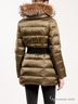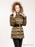 Пуховик-куртка, оформленный стегано строчкой. Воротник-стойка дополнен капюшоном на кулиске. Рукава понизу с эластичными вставками. Пояс идет в комплекте.
