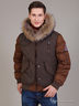 Универсальная двойная стеганая куртка средней длины выполнена из тканей актуальных расцветок с трикотажной резинкой по низу рукавов и по низу изделия, с центральной застежкой-молнией и с удобными боковыми карманами. Куртка дополнена оригинальным капюшоном, расстегивающимся по среднему шву, со съемной опушкой из натурального меха енота, что делает куртку интересной и практичной. Поверх куртки имеется жилет с множеством функциональных карманов, который может использоваться как полноценное самостоятельное изделие.