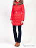 Стильный пуховик яркой расцветки с уютным капюшоном и центральной застежкой на молнию. Удобные карманы по бокам. Отличный выбор на холодный сезон. В комплект входит пояс.