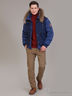 Универсальная двойная стеганая куртка средней длины выполнена из тканей актуальных расцветок с трикотажной резинкой по низу рукавов и по низу изделия, с центральной застежкой-молнией и с удобными боковыми карманами. Куртка дополнена оригинальным капюшоном, расстегивающимся по среднему шву, со съемной опушкой из натурального меха енота, что делает куртку интересной и практичной. Поверх куртки имеется жилет с множеством функциональных карманов, который может использоваться как полноценное самостоятельное изделие.