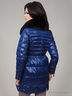 Молодежный удлиненный стеганый пуховик приталенного силуэта. Смещенная застежка на молнию в сочетании с двойным рядом пуговиц, а также отделка из кожи по воротнику и вдоль застежки придают пуховику оригинальность. Съемный воротник из натурального песцового меха делает модель не только интересной, но и практичной.