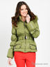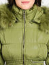 Мягкий и очень теплый пуховик выполнен из джордана с пуховым утеплителем. Модель приталенного силуэта с воротом-стойкой и со съемным капюшоном, декорированным съемным мехом енота. Застегивается на молнию. Спереди два прорезных кармана на молнии. Длинный прямой рукав декорирован хлястиком с пряжкой. В комплекте изящный ремень.