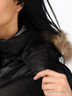 Детали: застежка на молнию и кнопки, капюшон с отстегивающимся мехом отстегивается от основания изделия, два кармана на молнии, неэластичный пояс с пряжкой