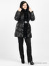 Модный пуховик приталенного силуэта. Выполнен из приятного на ощупь джордана. Отстегивающийся капюшон на молнии. Воротник-стойка с мехом. Застежка на молнию. Спереди 2 прорезных кармана на молнии. талия подчеркнута поясом-резинкой. Прекрасный вариант на каждый день!
