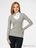 Теплый трикотажный пуловер из приятного на ощупь материала с эффектом двойки. Отложной воротник на стойке. Планка-застежка на пуговицах. V-образный вырез горловины. Длинные рукава.