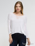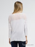 Летний пуловер из вискозного вязаного полотна с накладными карманами. Модель с округлым вырезом горловины и длинными рукавами. Декорировано изделие кружевом. Эта вещь станет прекрасной составляющей Вашего гардероба.