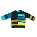 Пуловер вязаный с V-образным воротом. Рисунок сдвинутых полос. Рукава длинные. До 2 лет застежка пуговицами на плече.