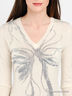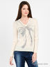 Отличный пуловер свободного силуэта из трикотажа средней плотности. V-образный вырез горловины, длинный рукав, на полочке оригинальный рисунок. Идеальный вариант на каждый день.