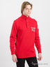 Оригинальный пуловер с воротником стойкой и длинными рукавами. Изделие декорировано принтом на груди и плече. Короткая застежка на пуговицы сверху.