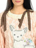 Мягкий пуловер из фактурной трикотажной ткани выделит Вас из толпы и согреет в прохладную погоду. Прямого кроя. Округлый вырез горловины на резинке с завязками декорирован рюшами. Длинный прямой рукав и низ изделия собраны на многорядную резинку с рюшами. Полочка декорирована оригинальной аппликацией с ворсистой поверхностью.