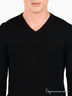 Детали: v-образный вырез горловины дополнен трикотажной лентой в рубчик, манжеты и подол так же в рубчик, классический крой.
