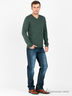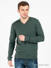 Повседневный пуловер из трикотажного материала средней плотности с длинным рукавом и V-образным вырезом горловины. Стильный вариант на каждый день.