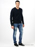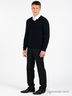 Детали: v-образный вырез горловины дополнен трикотажной лентой в рубчик, манжеты и подол так же в рубчик, классический крой.