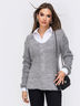 Вязаный свитер из мягкой пряжи «травка» с V-образным вырезом горловины. Состав: 30% - шерсть, 25% - кашемир, 20% - акрил, 10% - полиэстер, 15% - эластан.