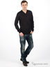Детали: V-образный вырез горловины, рукав длинный с манжетой-резинкой, по низу изделия резинка, рукава декорированы заплатками.