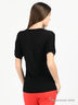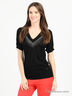Великолепный пуловер из вискозного трикотажа. V-образный вырез горловины, короткий цельнокроеный рукав и низ изделия на манжете. Полочка декорирована россыпью страз. Отличный вариант на каждый день.