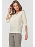 Особенности: Пуловер вязаный выполнен из смесовой пряжи, фактурным способом. Горловина оформлена резикой с контрастной узкой полоской.