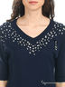 Детали: короткий рукав на манжете в рубчик, полочка декорирована пришитыми стразами