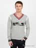 Великолепный пуловер из тонкого, мягкого хлопкового джерси. V-образный вырез горловины. Длинные облегающие рукава. Полочка, спинка и рукава дополнены вставками из более плотного трикотажа. На полочке и спинке оригинальные печатные рисунки. Манжеты рукавов и низ изделия выполнены из рибаны. Отличный вариант на каждый день.