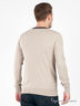 Детали: V-образный вырез горловины, длинные рукава, низ изделия и манжеты рукавов оформлены в рубчик