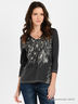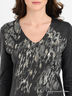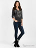Детали: v-образный вырез горловины, укороченный прямой рукав, полочка декорирована серебристым напылением и стеклярусом