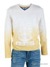 Элегантный пуловер добавляет образу лоск и аристократичность. Благодаря прекрасному составу пряжи, в основе которого лен, пуловер имеет модную узелковую, слегка шероховатую структуру. Эффектный цветовой переход от темного к светлому делает его необычным и оригинальным. Яркий солнечный цвет пуловера в сочетании с принтом, вовлекающим в атмосферу увлекательного морского путешествия делает пуловер ярким заметным элементом коллекции.