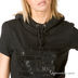 Стильная толстовка с капюшоном и короткими рукавами. Спереди оригинальный принт и два накладных кармана с декоративными шнурками, завязывающимися в бант.