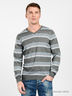 Стильный пуловер с длинным рукавом и V-образным вырезом горловины выполнен из полушерстяного трикотажа средней плотности. Изделие декорировано контрастной полоской. Отличный вариант для тех, кто любит комфорт и качество.