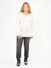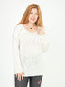 Пуловер с круглым вырезом, длинными рукавами и кружевной отделкой. Длина ок.70 см. Параметры фотомодели: рост 172 см, российский размер 48.