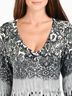 Детали: v-образный вырез, длинные рукава, оригинальный принт, спереди украшен бисером