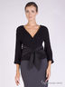 Оригинальный пуловер с V-образным вырезом с запахом и рукавом 7/8. Передняя часть и рукава ажурной вязки, ткань спины плавно переходит в завязки на передней части. Отличная модель для создания повседневного образа.
