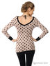 Детали: V-образный вырез на спине с завязками, длинные рукава с манжетами в рубчик