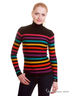 Женский пуловер в разноцветную полоску с длинными рукавами и высоким воротником. Металлическая пуговица с гравировкой Little Marcel на рукаве.