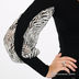 Оригинальный черный пуловер с шифоновой вставкой подчеркнет Ваш индивидуальный стиль и добавит романтичности в образ. Приятная на ощупь ткань. Длинный рукав с шифоновой вставкой в сборку. Полочка с запахом, пристроченным на боковом шве. Тонкий трикотажный поясок.