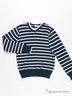 Детали: V-образный вырез горловины, длинные рукава, манжеты рукавов и низ изделия оформлены в рубчик