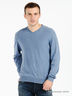 Стильный пуловер из трикотажного материала средней плотности с длинным рукавом и V-образным вырезом горловины. Полочка декорирована ромбовидным узором. Отличный вариант для тех, кто любит комфорт и качество.