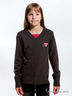 Пуловер с V-образным вырезом и контрастной вставкой спереди. Небольшой принт. Размер по росту в см.