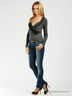 Детали: V-образный вырез с запахом; высокие манжеты и низ изделия в виде трикотажной резинки; оригинальные воланы