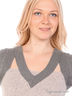 Необычный пуловер с эффектом двойки, V-образным вырезом горловины и длинным рукавом. Яркий вариант на каждый день.