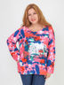 Пуловер из тонкого трикотажа с рисунком и стразами спереди. Круглый вырез, длинные рукава. Длина ок.66 см. Параметры фотомодели: рост 172 см, российский размер 48.