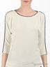 Детали: округлый вырез горловины, цельнокроеные рукава, верх украшен контрастным кантом