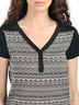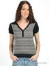 Детали: полочка фактурной вязки декорирована оригинальным вязаным принтом, короткий рукав, застежка на три пуговицы