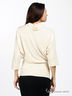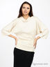 Детали: широкий воротник хомут, цельнокроеные рукава 3/4, на талии более плотная трикотажная вставка