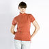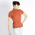 Пуловер с коротким рукавом и декоративным ремешком на талии. Короткие рукава, воротник стойка. Застежка на пуговицы.
