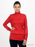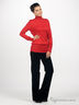 Стильный удлиненный пуловер из тонкой трикотажной, эластичной ткани. Прямого кроя. Ворот-гольф. Длинный рукав и низ изделия на трикотажной резинке. Изделие декорировано атласным бантиком и медальоном с логотипом бренда на полочке.