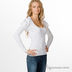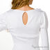 Пуловер из плотного трикотажного полотна. Спереди круглый вырез, сзади вырез «капелька». Рукавчик фонариком, заужен к низу.