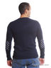 Мягкий и теплый пуловер - база зимнего гардероба. Простая и стильная модель из теплого трикотажа с V-образным вырезом. Края в рубчик. Контрастные налокотники. Прямой крой. Длина в размере L ок. 73 см, разница в 2 см между размерами.